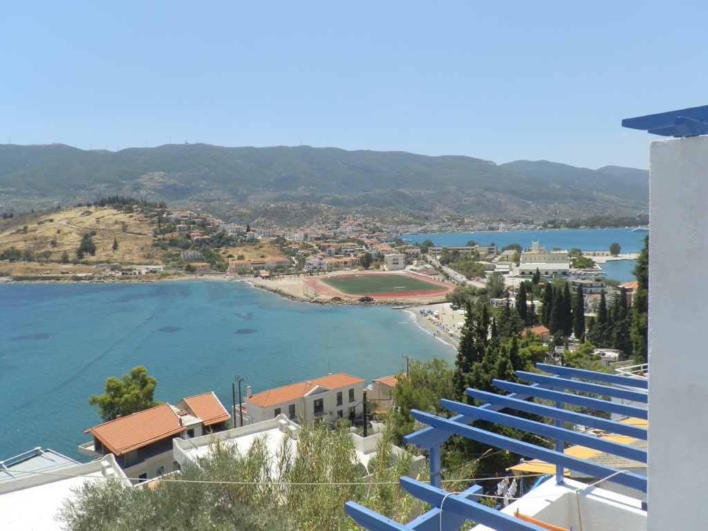 Τα ευρύχωρα διαμερίσματα του είναι χτισμένα κλιμακωτά στην πλαγιά λόφου, σε ένα θαυμάσιο περιβάλλον και σας προσφέρουν από τις βεράντες τους μια μαγευτική θέα του Πόρου και της γύρω περιοχής, που συνδυάζει το απέραντο γαλάζιο με τη γραφικότητα της περιοχής. Η ομορφιά του τοπίου θα σας σαγηνεύσει.Η κάθε μία από τις παραλίες απέχει από τα studios περίπου 200 μέτρα και είναι προσβάσιμη με σκαλάκια, που οδηγούν από το κτίριο στον κεντρικό δρόμο.